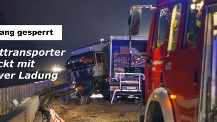 Der Sachschaden beläuft sich auf über 50.000 Euro, das geladene Gefahrgut blieb bei dem Unfall unversehrt, der Laster transportierte leicht radioaktiven Abfall. Die Fahrbahn in Richtung München musste für mehrere Stunden gesperrt werden. Drei Spuren sind mittlerweile wieder befahrbar.
