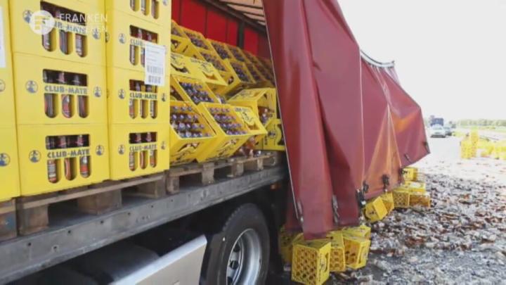 Heute Morgen verlor ein Lkw am Autobahnkreuz Fürth/Erlangen einen Teil seiner Ladung. Circa 100 Getränkekästen und die damit gefüllten Glasflaschen verteilten sich daraufhin auf der Fahrbahn.