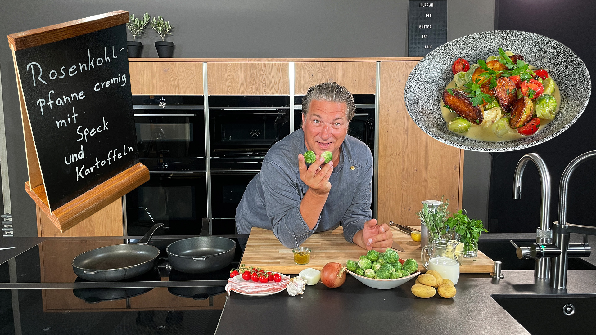 Heute gibt es eine cremige Rosenkohlpfanne, mit Speck und Kartoffeln. Das Rezept können Sie hier als PDF herunterladen. Außerdem lohnt sich immer ein Blick in unser umfangreiches Rezept-Archiv!