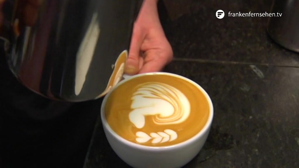 Der Begriff „Kunst zum Genießen“ könnte nicht besser zutreffen als in Kristina Eroninas Fall: Denn seit auch in Deutschland das Kaffeetrinken mehr und mehr zelebriert wird, ist auch der Mensch hinter der Theke, der den Espresso oder Cappuccino zubereitet, ins Rampenlicht gerückt. Was der Koch im Restaurant, ist mittlerweile der Barista im Café. Freund der Bohne, Kenner der Technik, Virtuose am Milchschaum. Eine im wahrsten Sinne des Wortes ausgezeichnete Barista haben wir in Nürnberg getroffen. Sie hat bei den zurückliegenden Kaffee-Meisterschaften in München in der Disziplin „Latte-Art“ den zweiten Platz belegt. FrankenFernsehen hat sie ein paar Geheimnisse der perfekten Kaffee-Darbietung verraten und schon beim ersten Versuch war klar: Das Auge isst mit – aber es trinkt auch mit.